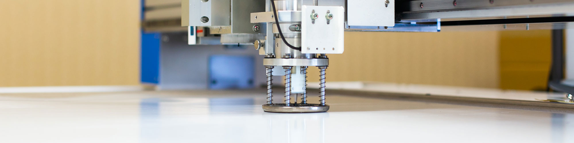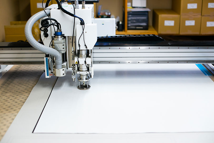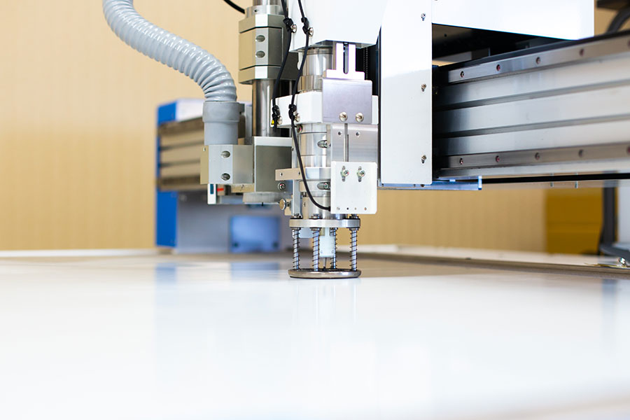図面をCADデータにしたものを高精度センサーによりカッター刃で材料を輪郭カットしていきます。