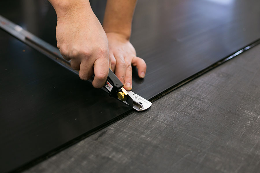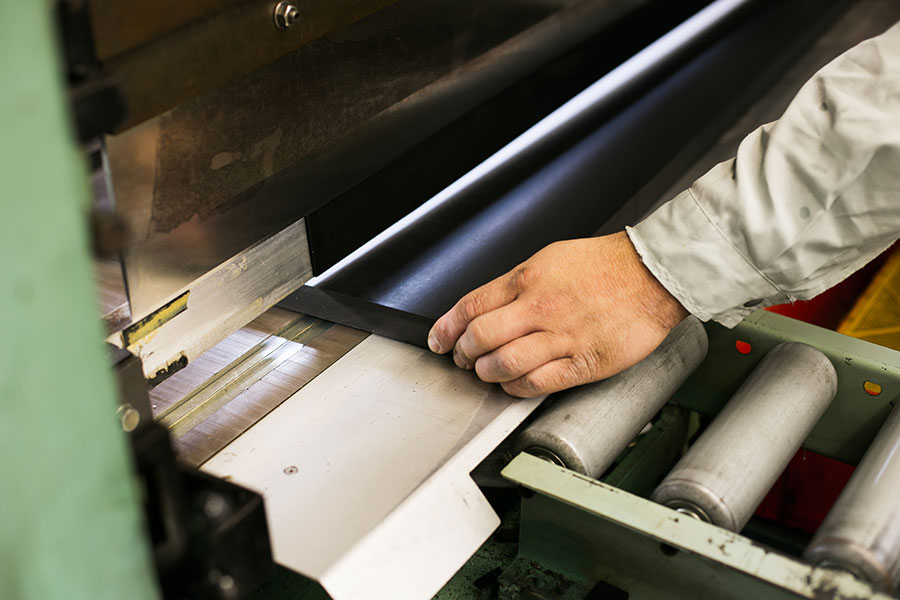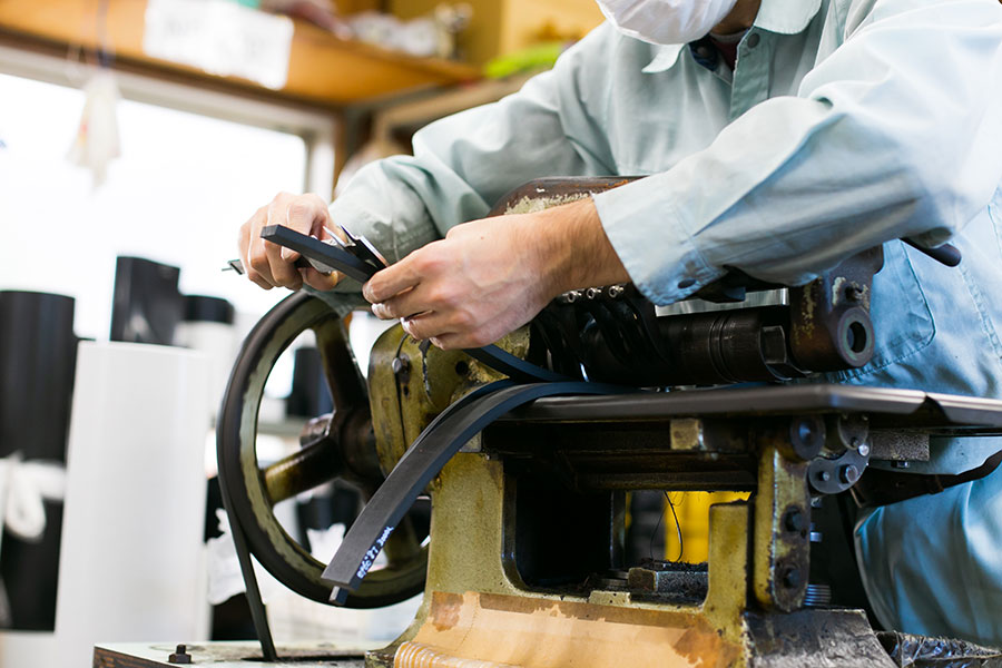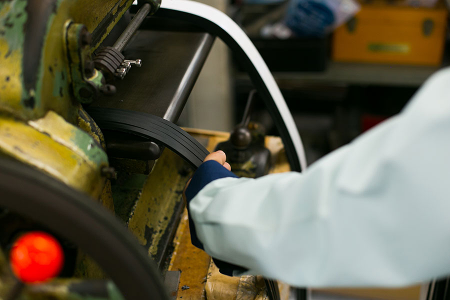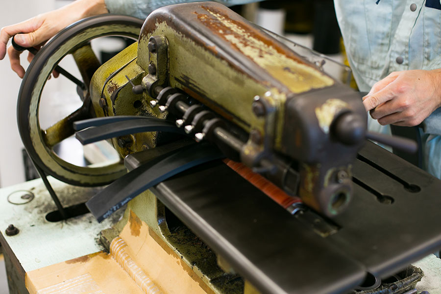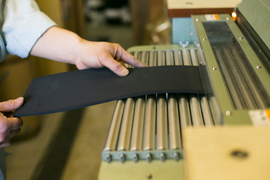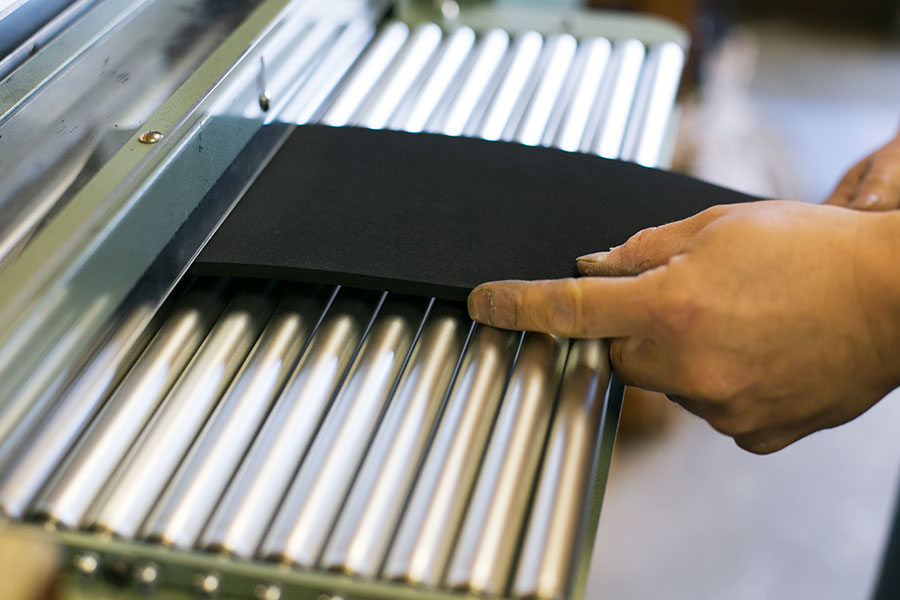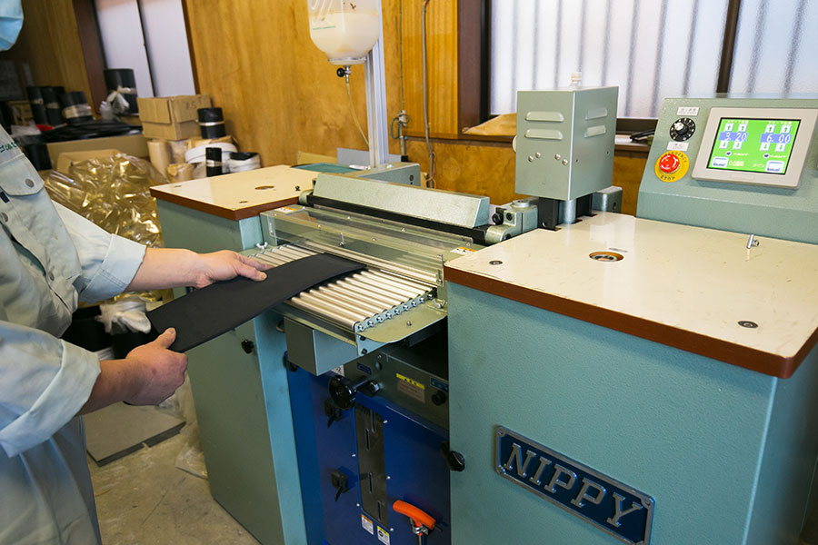 ロール状のゴム板を、任意の幅で帯状に切断することができます。