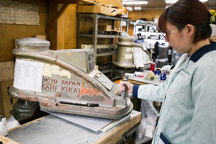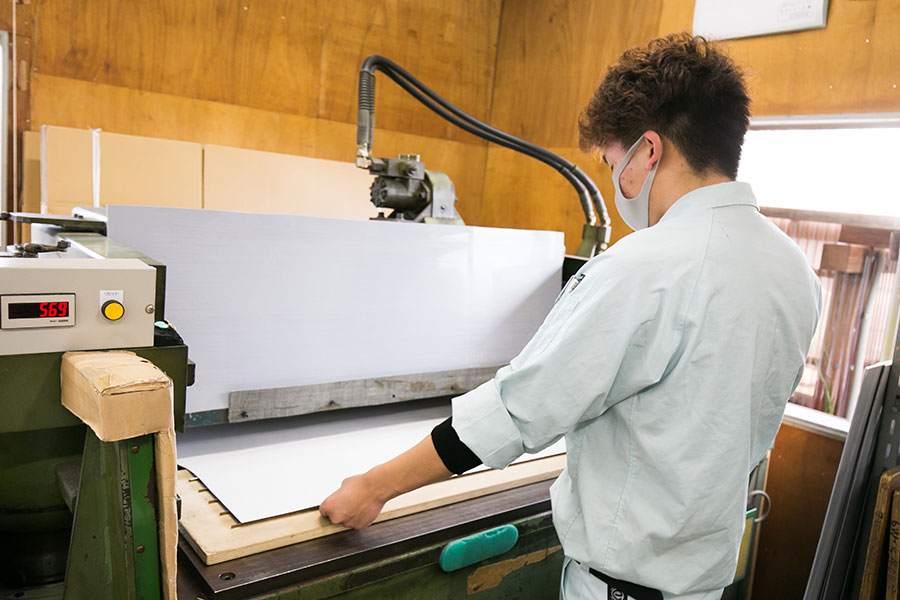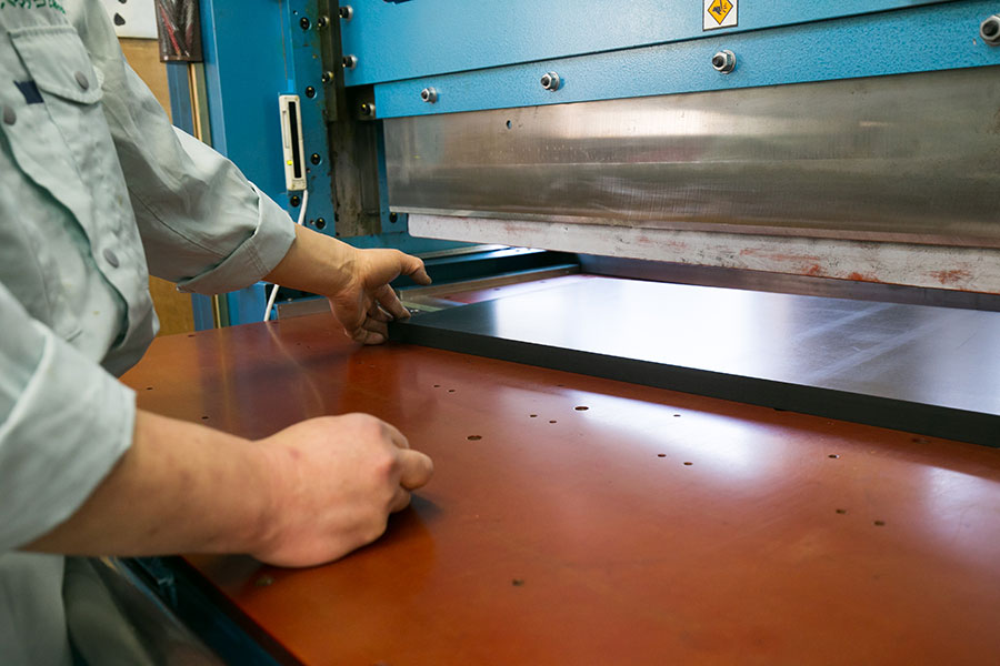裁断機にセットした素材を刃で押し切る加工方法です。